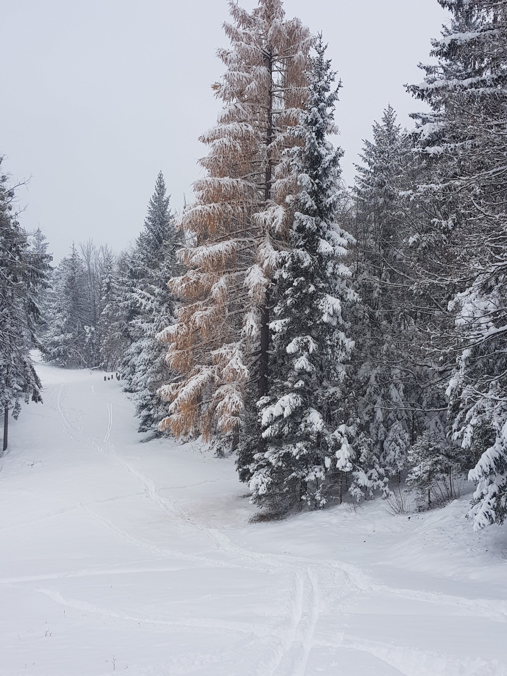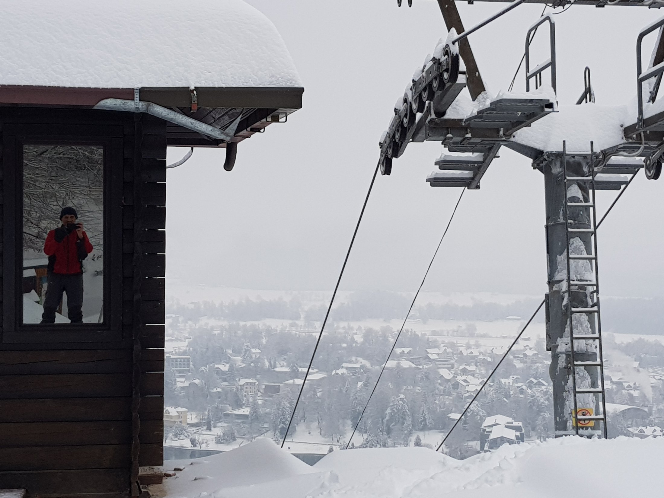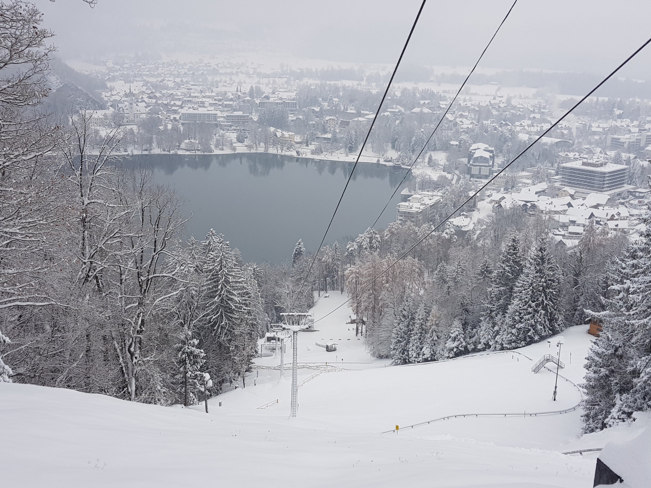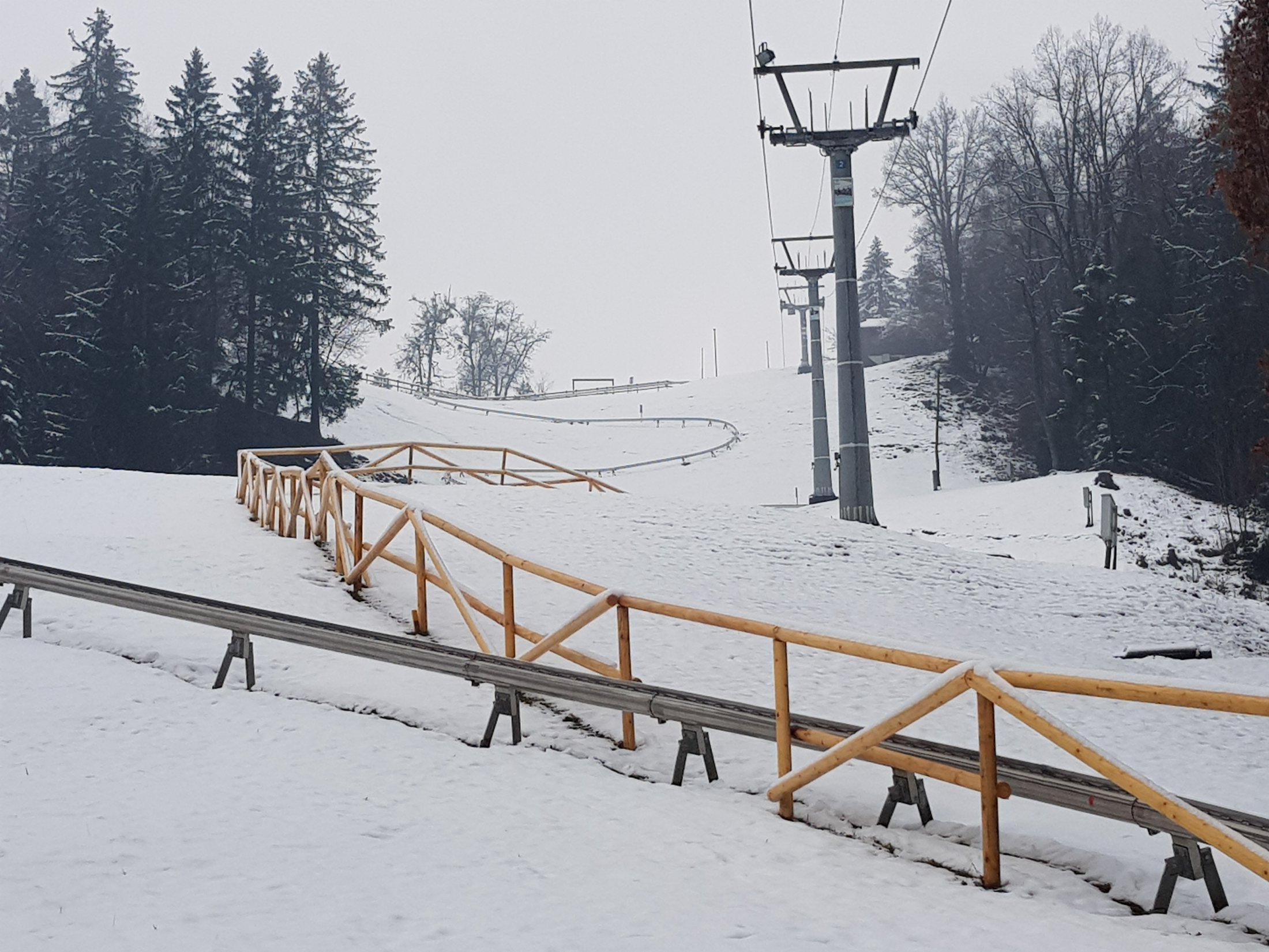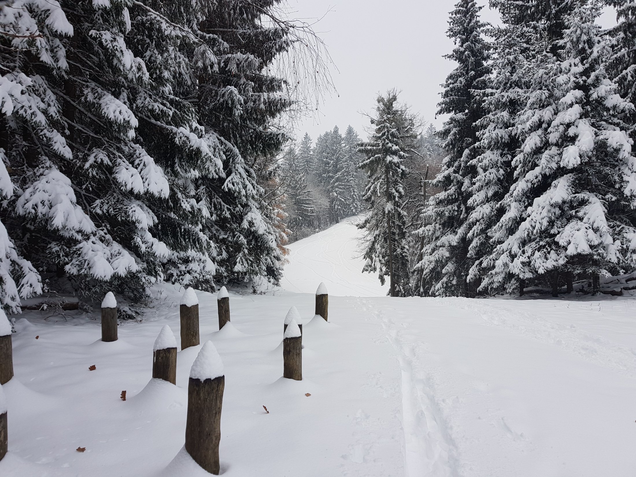 Prvi sneg in hrib za hišo je bilo idealno za jutranjo turo. Na Plani sem zavil na gozdno pot in priplezal do zgornjega dela smučišča. Špura je bila že potegnjena, saj je prvi odsmučal že pred službo. Na vrhnji strmini je še škrtalo, nato pa je šlo vedno bolje. Samo rodelbahn-u se je bilo treba izogibati, saj infrastruktura še ni (ne bo?) pripravila smučišča ( zgodnje napovedi za letošnji sneg so bile za po božiču). Juuhhhhhhuuu!