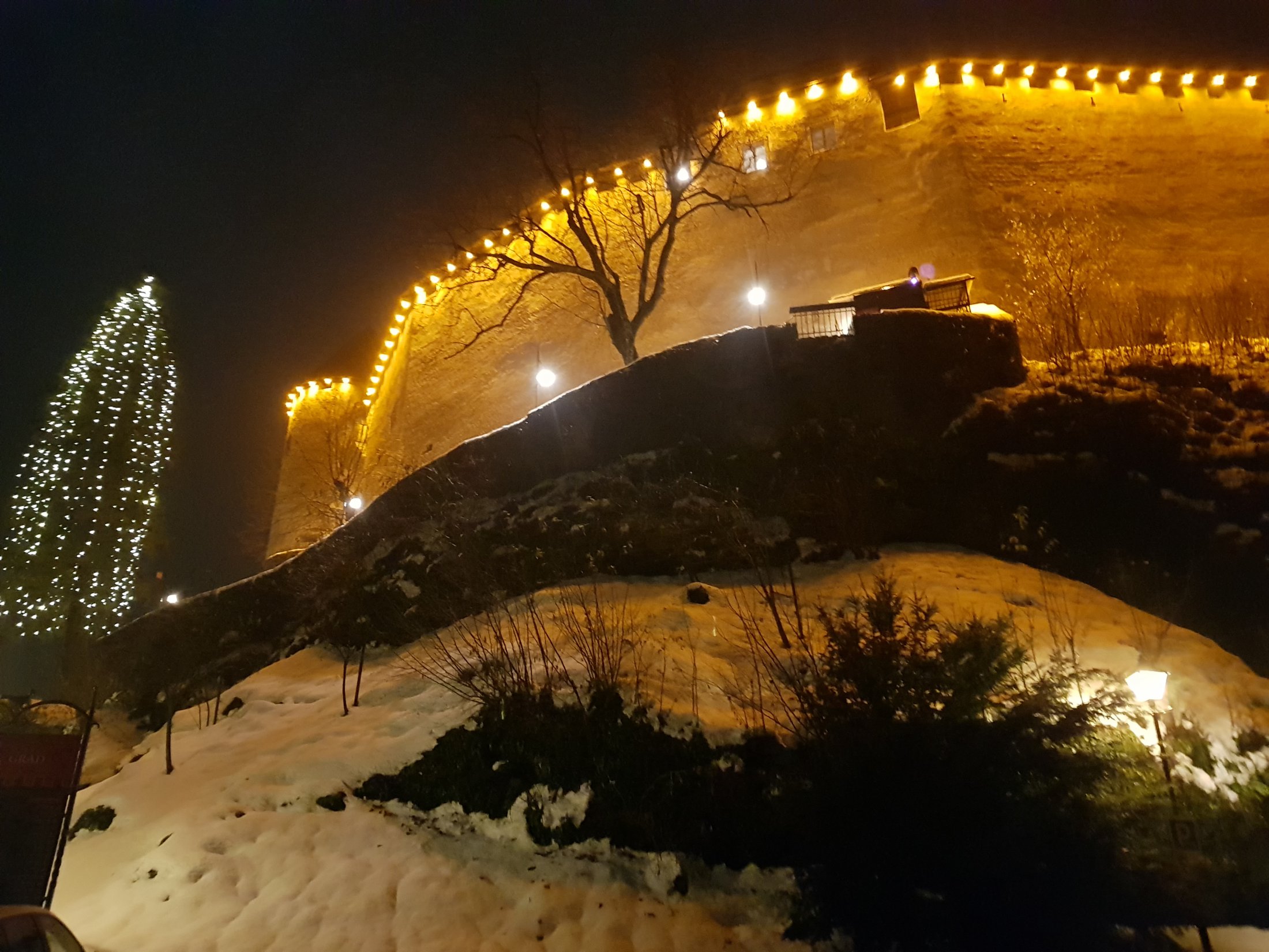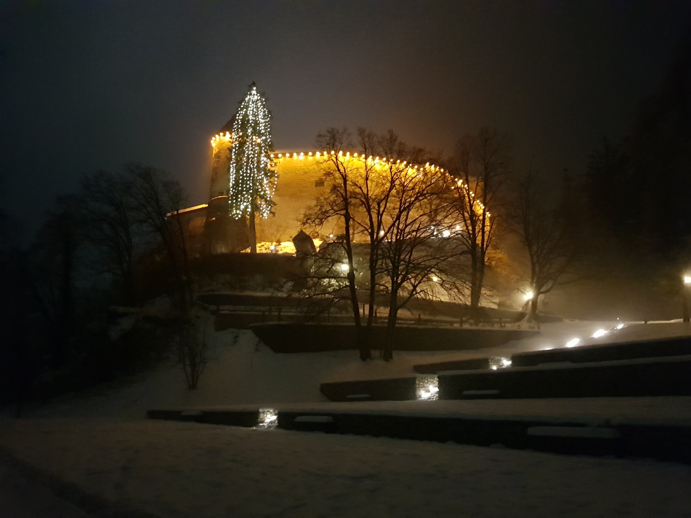 Z žabcem sva bila edina večerna obiskovalca blejskega gradu, žal samo do grajskih vrat. Tudi grajska vrata ne ustavijo korona virusa. Sva pa imela lep razgled na okrasitev zdraviliškega parka , jezerske promenade in hotelov.