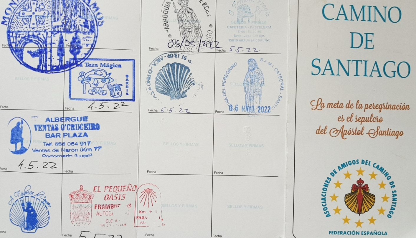 Če želite prejeti Compostela potrdilo, morate prehoditi vsaj zadnjih 100 km katere koli od poti Camino de Santiago z žigi na “romarskem potnem listu “(2 Eur), ki to dokazujejo.