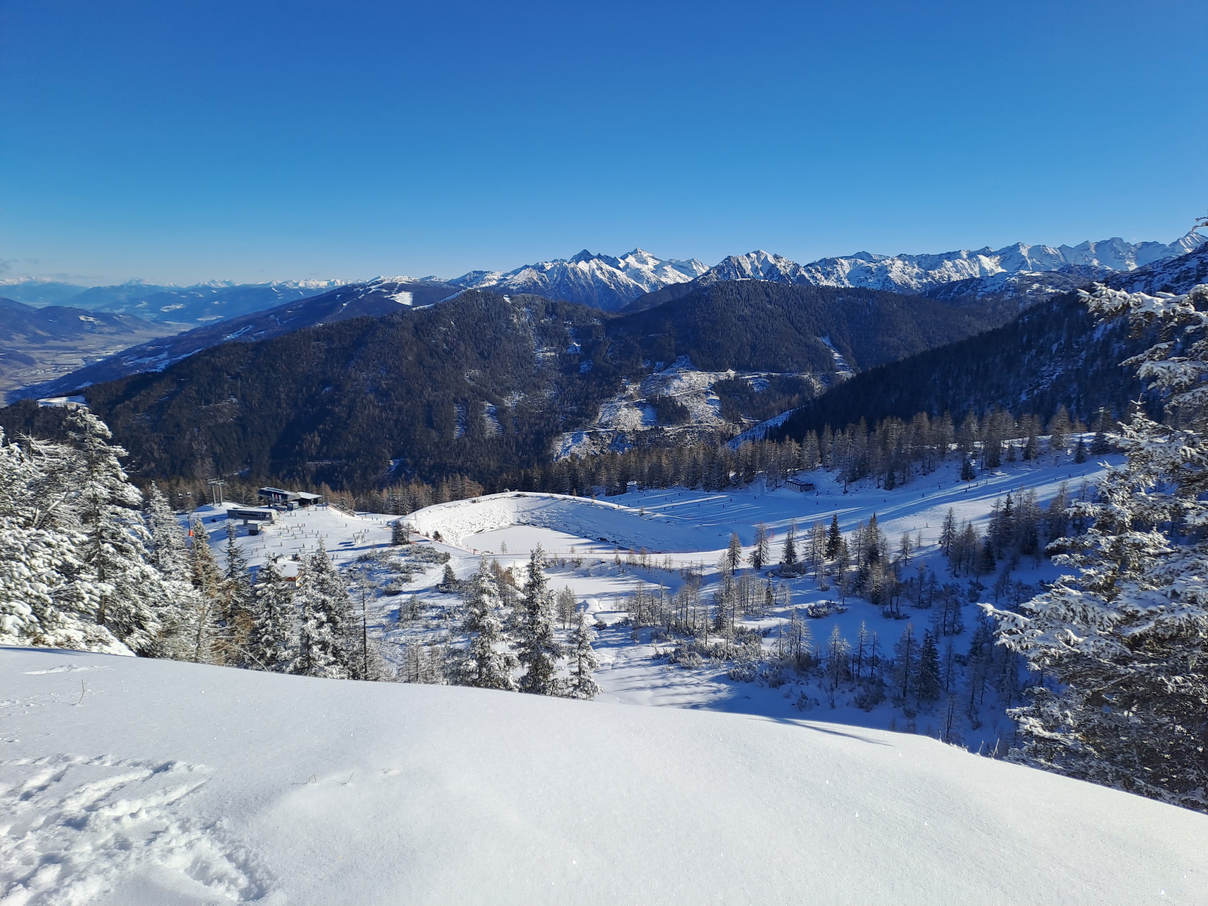 Po nekaj dneh prave polarne preizkušnje se nam je končno nasmehnilo “toplo” vreme. Pri -3 °C se nam je zdelo, kot da smučamo sredi poletja! Snežne razmere so bile vrhunske, razgledi na zasnežene Alpe pa takšni, da se je bilo težko odlepiti od panorame in se pognati v dolino.