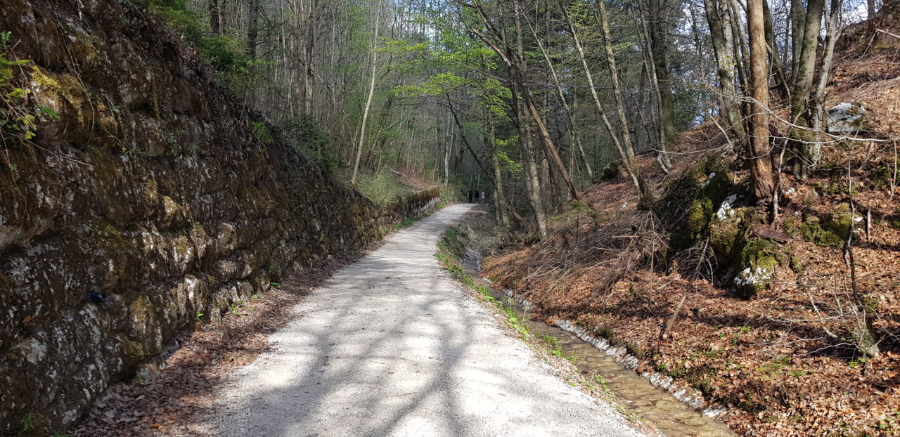 Za spomenikom se prične strm vzpon do glavne ceste v Završnici. Po slabem kilometru rahlega vzpona zavijemo pri parkirišču levo na makadamsko cesto, ki nas bo vodila do Valvazorjevega doma. Ta vzpon je dolg kar 5 kilometrov in bo preizkusil vaše kolesarske sposobnosti. Na vrhu vas bo čakal zaslužen odmor pri Valvazorjevem domu, kjer si lahko privoščite okusne domače dobrote in napolnite plastenke z brezplačno vodo .