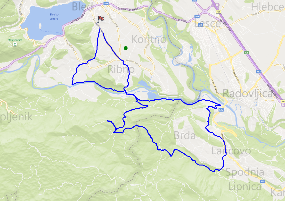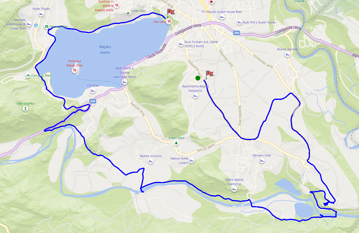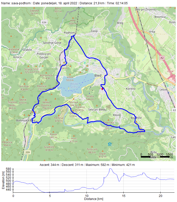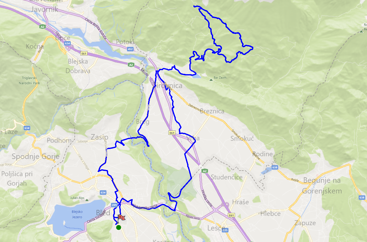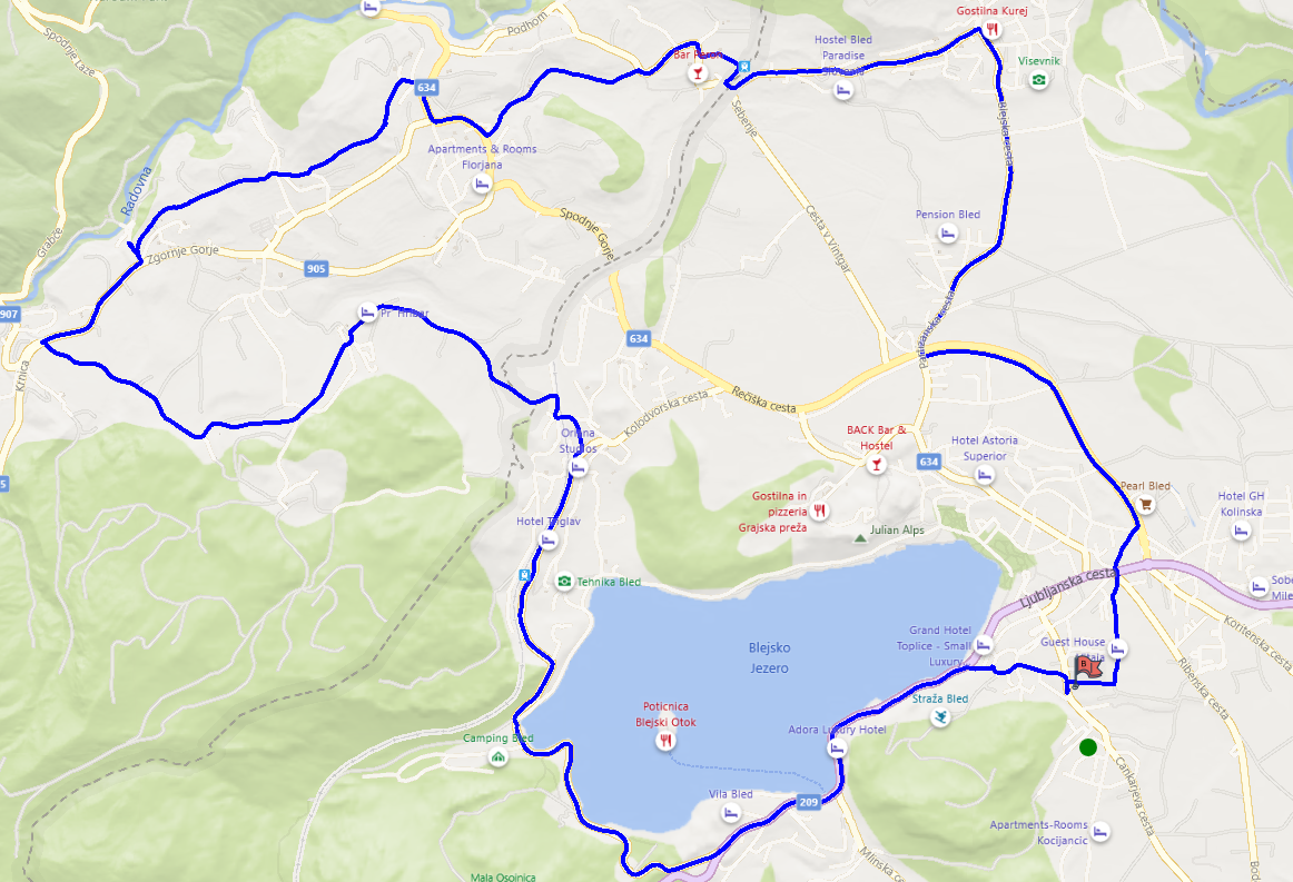 Izhodišče: železniška postaja (ŽP) Bled Jezero, (574 m)