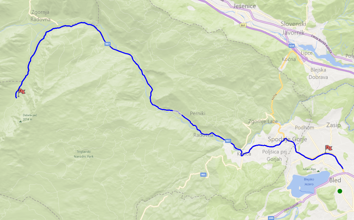 a) Bled (504m) – Bohinjska bela – Bohinjska bistrica – Bitnje -Srednja vas – Koprivnik – Rudno polje(1430m) – Zgornje Gorje – Bled