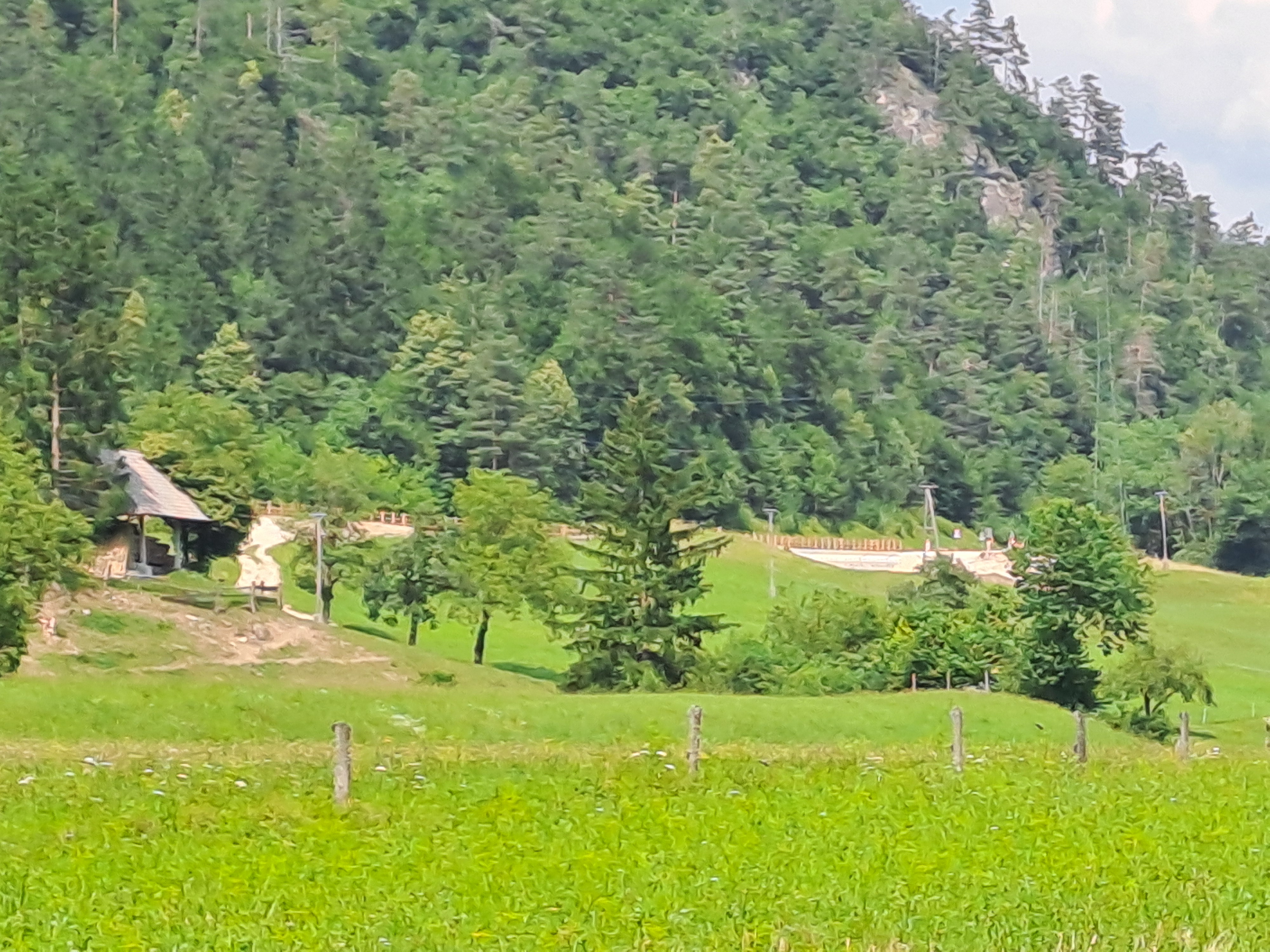 Pred križiščem z glavno cesto za Lipnico zavijemo ostro desno. Tako se izognemo prometni gneči na cesti za Lipnico. Čaka nas sicer strmejši vzpon, vendar je pot po makadamski cesti bolj kolesarska kot po glavni cesti.