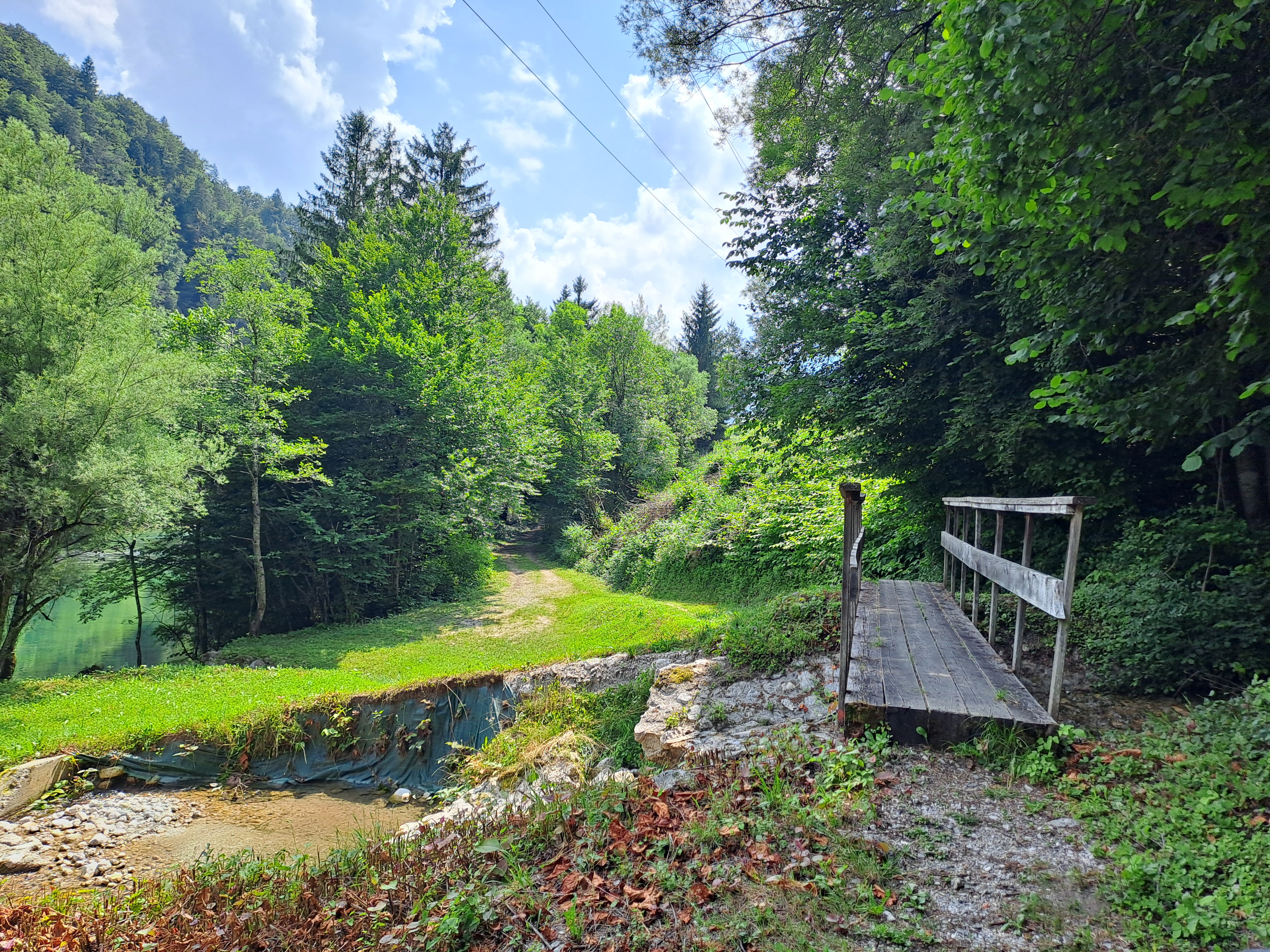 Prečkamo most in po makadamski cesti nadaljujemo proti Bodenskemu mostu in nato Lancovem.